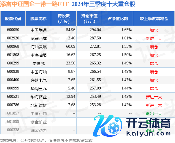 添富中证国企一带一皆ETF为指数型-股票基金,凭证最新一期基金季报清醒,该基金钞票确立:股票占净值比98.97%,无债券类钞票,现款占净值比1.12%。基金十大重仓股如下: