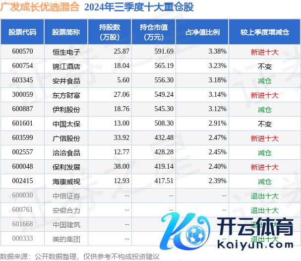 广发成长优选搀和为搀和型-活泼基金,字据最新一期基金季报裸露,该基金钞票树立:股票占净值比91.02%,债券占净值比6.05%,现款占净值比0.92%。基金十大重仓股如下: