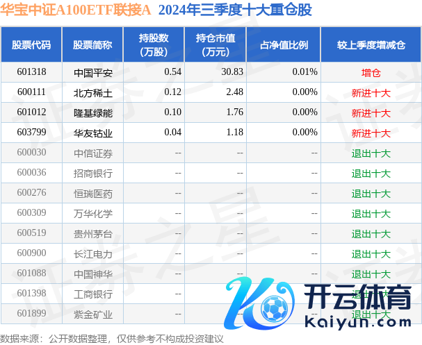 华宝中证A100ETF消亡A为指数型-股票基金,说明最新一期基金季报深远,该基金钞票设置:无股票类钞票,无债券类钞票,现款占净值比5.5%。基金十大重仓股如下: