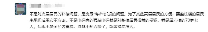 ②合计加装电梯不好:不是很需要电梯,这是部分东说念主群的需求,完全可以通过置换高层住宅来处理,加装电梯占用大家空间,后期用度多,产生的问题会更多,搞不好还会导致小区屋子贬值,影响合座的居住品性。